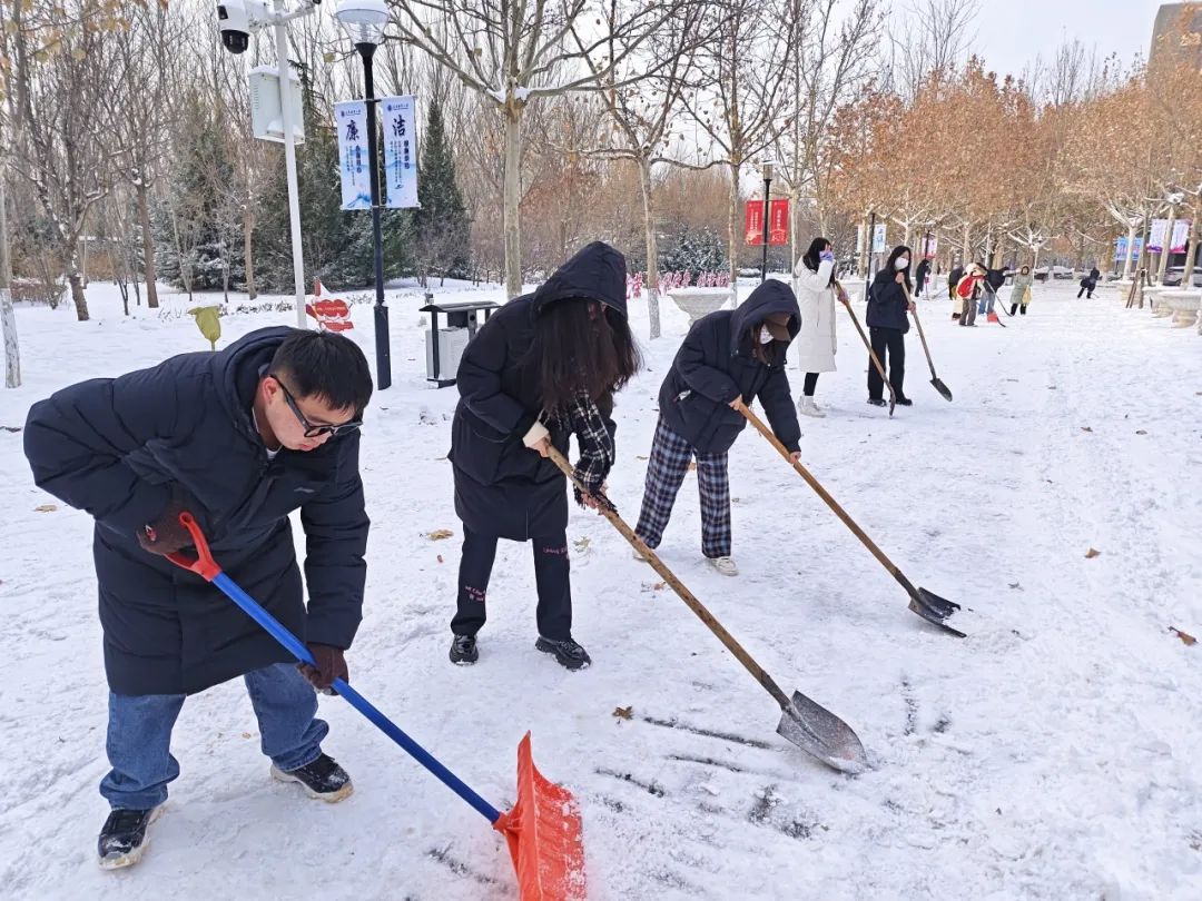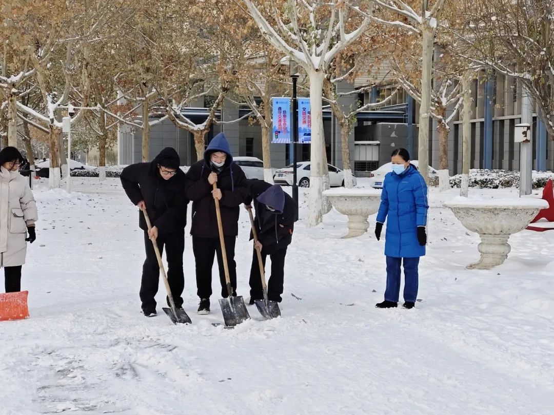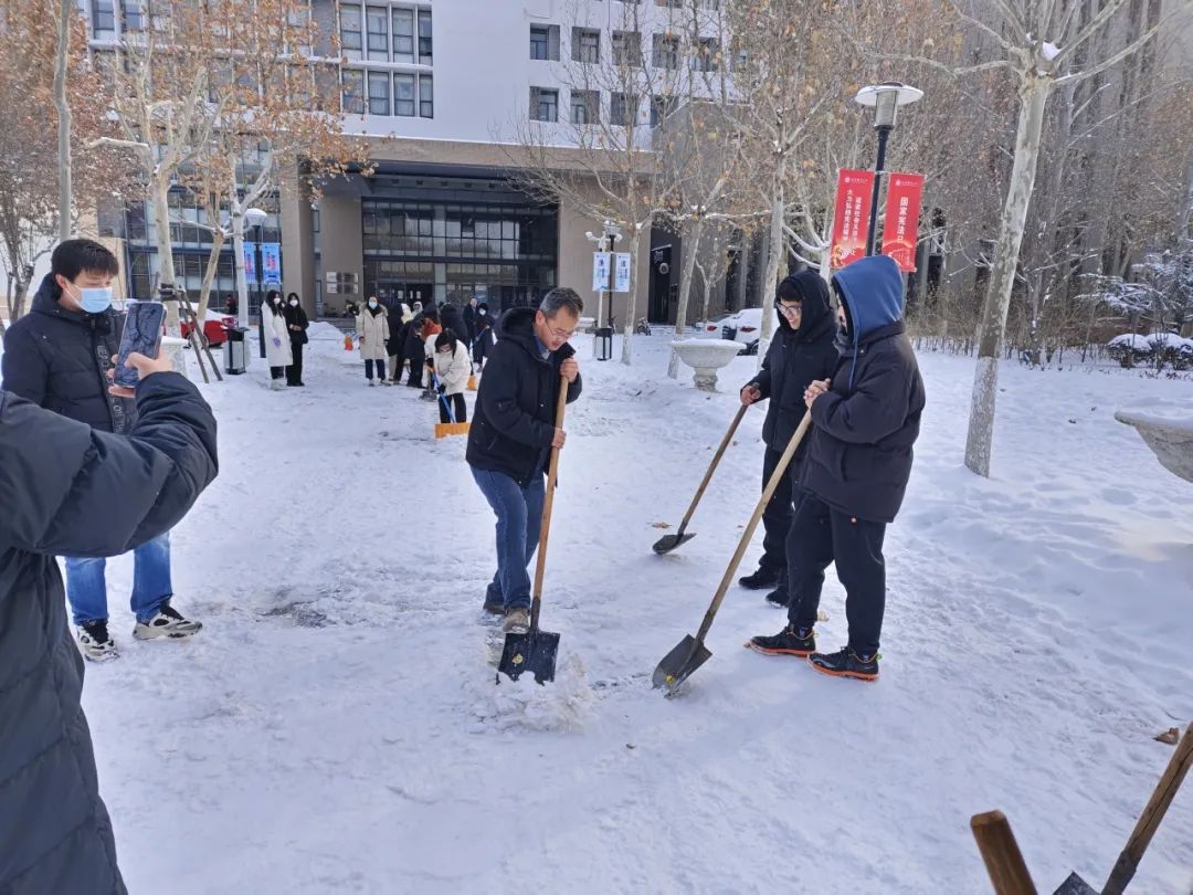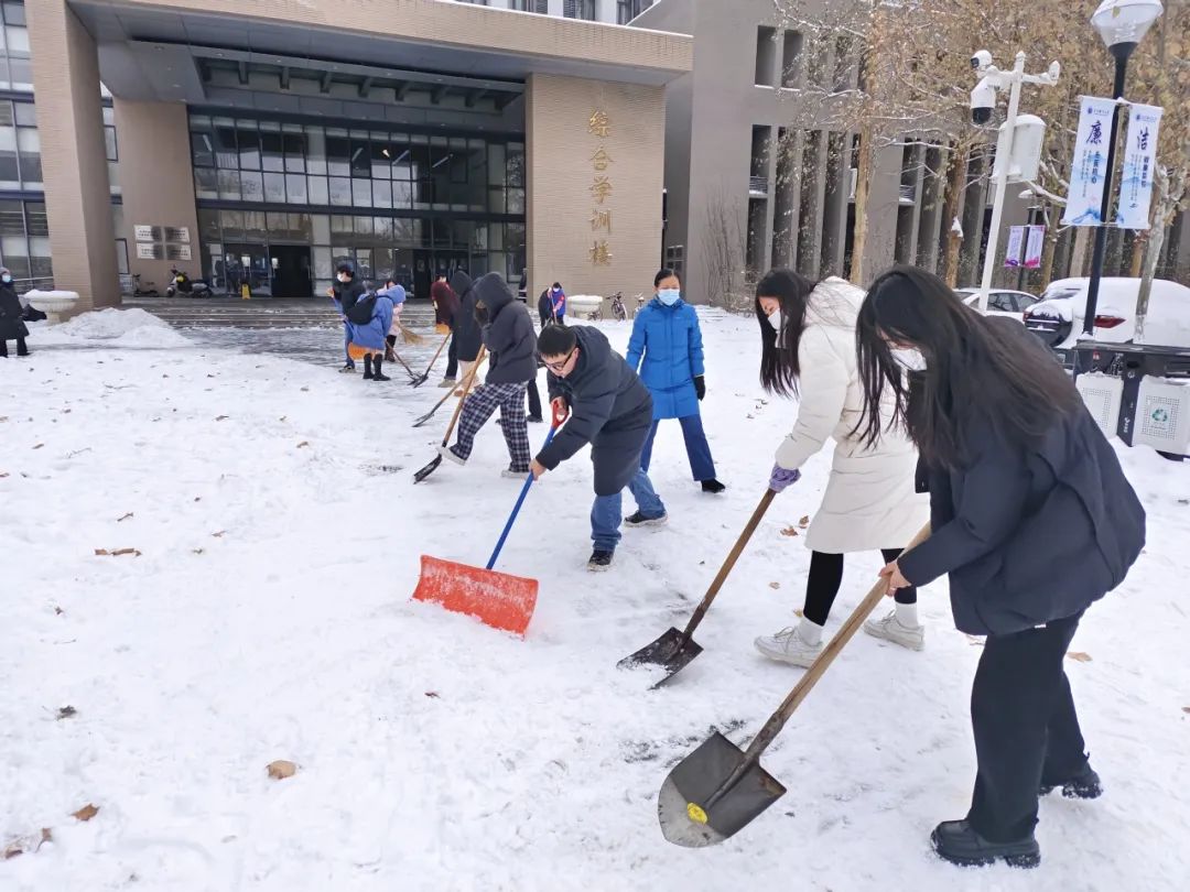 恰逢冬月,大雪骤至。一夜间天津职业大学一片银装素裹。虽然雪景很美,但大雪天气和道路结冰也对广大师生的生活造成了一些不便和安全隐患。为维护我们的校园环境,保障师生出行,学校发起了清除道路冰雪、保障师生安全的号召,眼视光工程学院积极响应,组织了师生扫雪活动,青年学生踊跃报名,参加人数超过了100人次。大家满怀激动与热情,积极投入到扫雪除冰的行动中来。大家的身影整齐的排成一队有序的在综合楼前清扫主干道,他们有的凿冰,有的铲冰,有的推雪,分工协作、齐心协力除去各处面积大而厚且硬的冰面,为综合楼上课的师生们开辟出一条条“安全通道”。部分来自南方的23级同学第一次体会到了“银装素裹,分外妖娆”的美,更感受到了用自己的力量为校园美化作贡献的激动与喜悦。面对厚厚的积雪,同学们充分发扬不畏艰苦的精神,用自己的双手去战胜困难,在志愿服务过程中感受到团结合作的重要性,领会了奉献的意义和价值,收获了欢笑和友谊。参与活动的同学们积极发扬志愿服务精神,在关键时刻发挥了模范带头作用,彰显出我院青年学子的责任与担当,在寒冷中收获温暖、更获得了广大师生的赞许。他们表示,作为新时代的青年,正应该秉承全心全意为广大同学服务的宗旨,积极奉献,投身于各项有意义的工作当中,用饱满的热情贡献全部的力量,争做天职的坚定守护者。学院也将继续做好志愿服务的组织工作,带好志愿服务队伍,传承志愿服务精神,让青年活跃的身影