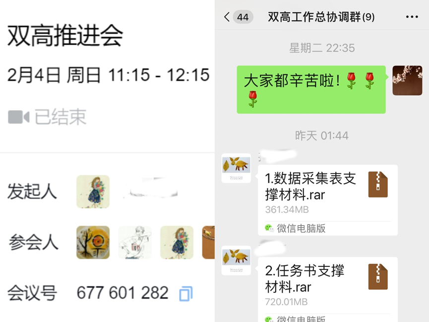 1月24日起,学校多次召开双高验收工作协调会,接到任务后,学院班子多次开会研究部署,组织“双高”项目验收工作专班,撰写“双高”验收报告,梳理支撑材料,填报数据平台,紧抓春节之前的时间,制定任务推进表,将工作安排至除夕前一天。面临紧迫的任务,老师们没有一丝退缩,有的老师腿伤还没有完全好就投入紧张的工作,有的老师将年幼的孩子委托给家人照顾,有的老师放弃回家与老人团聚。学院教师每天梳理材料,直至深夜甚至凌晨,还有老师在利用工作群沟通信息。