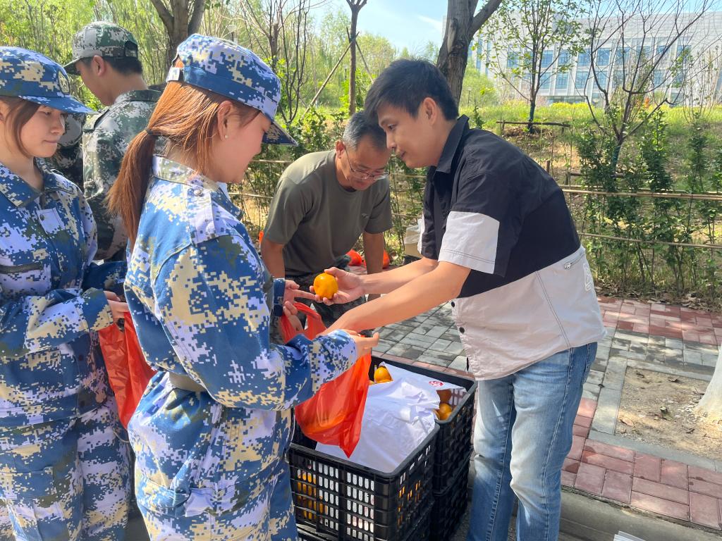 2023年9月20日上午学院党委书记高文艳和副书记李佐以及学院学生队伍代表眼视光工程学院来到训练场地对作训同学进行了慰问并带来了新鲜的水果。
