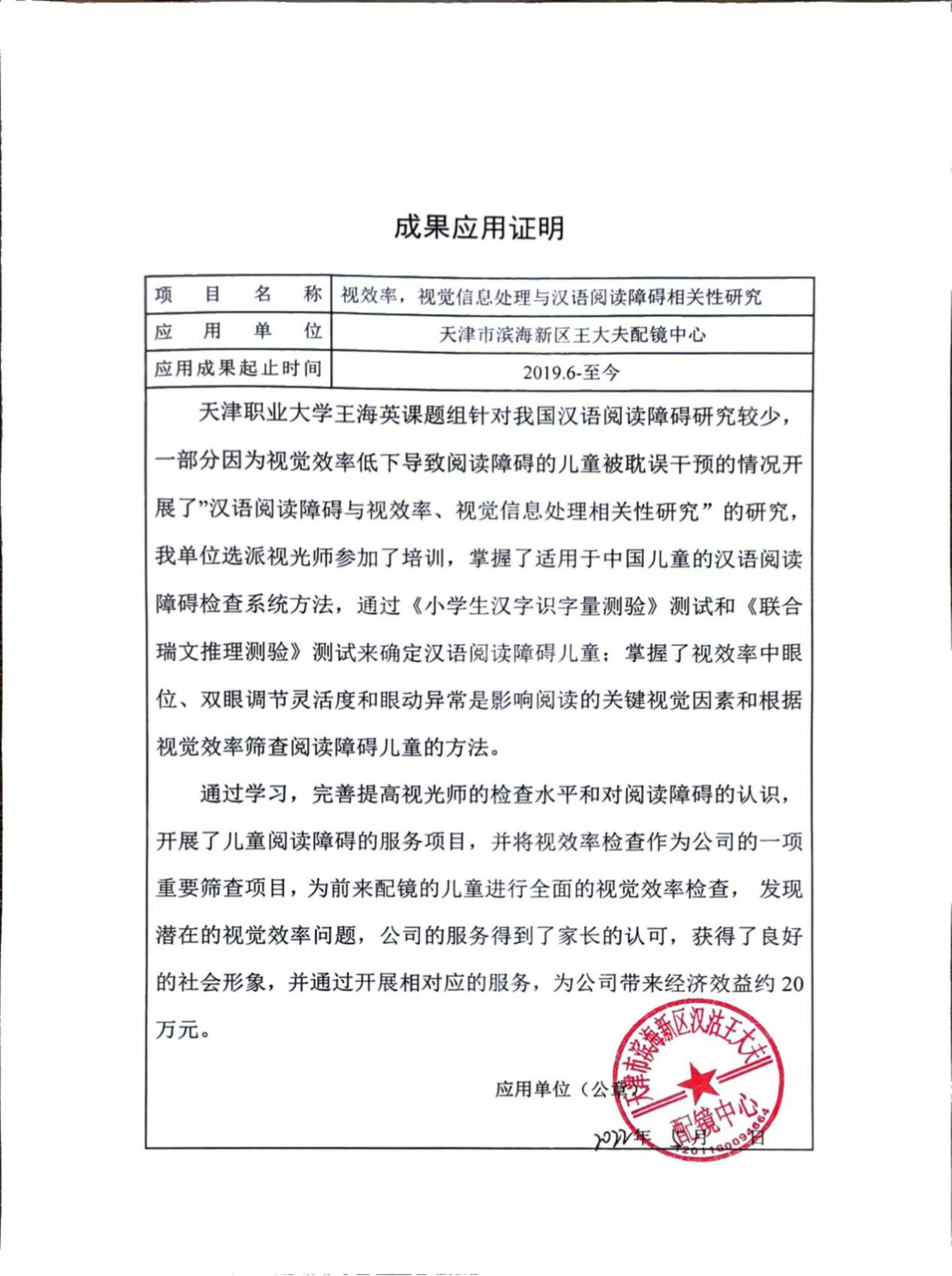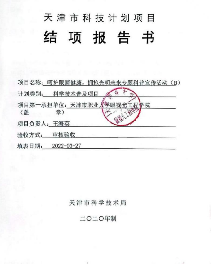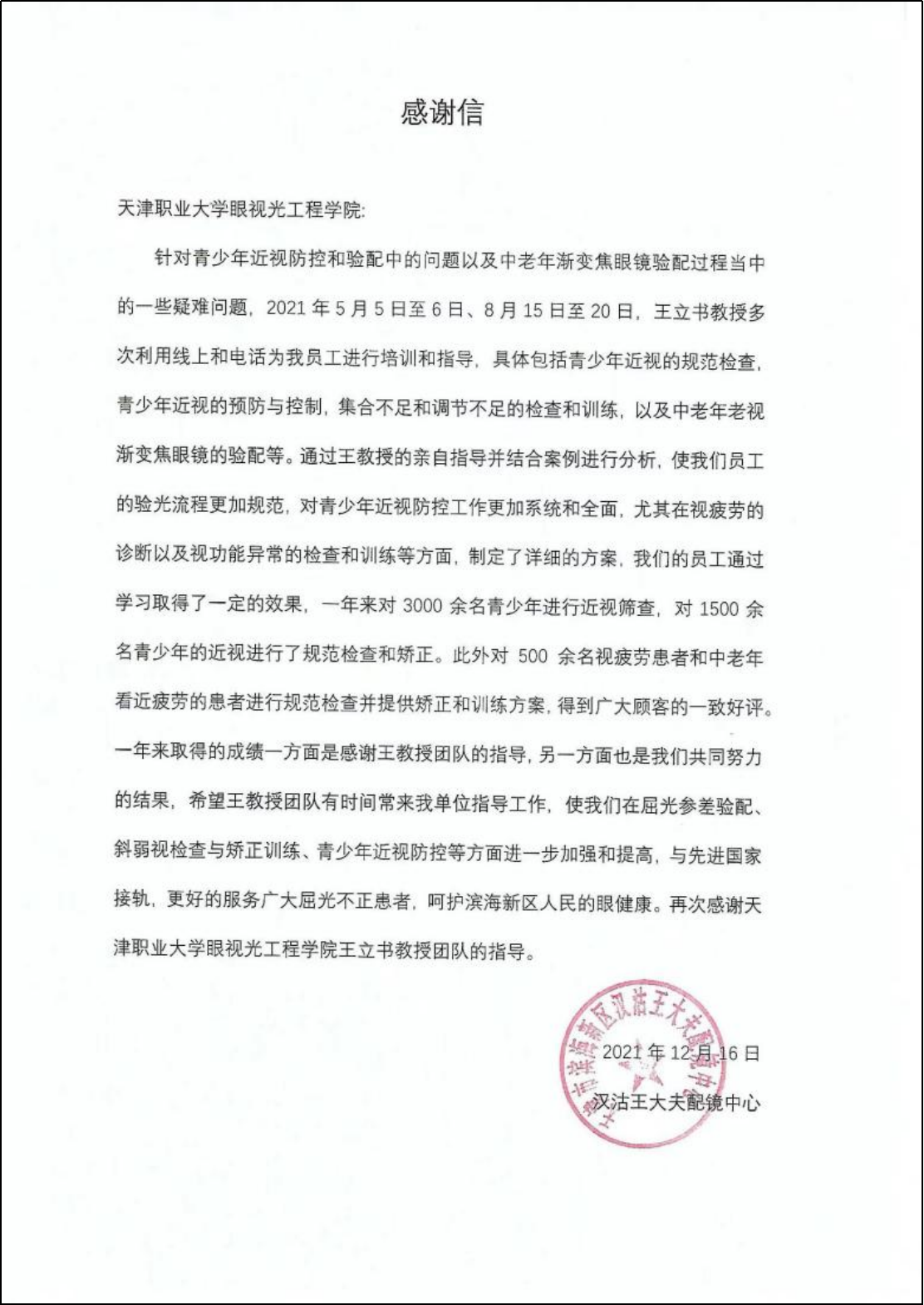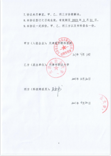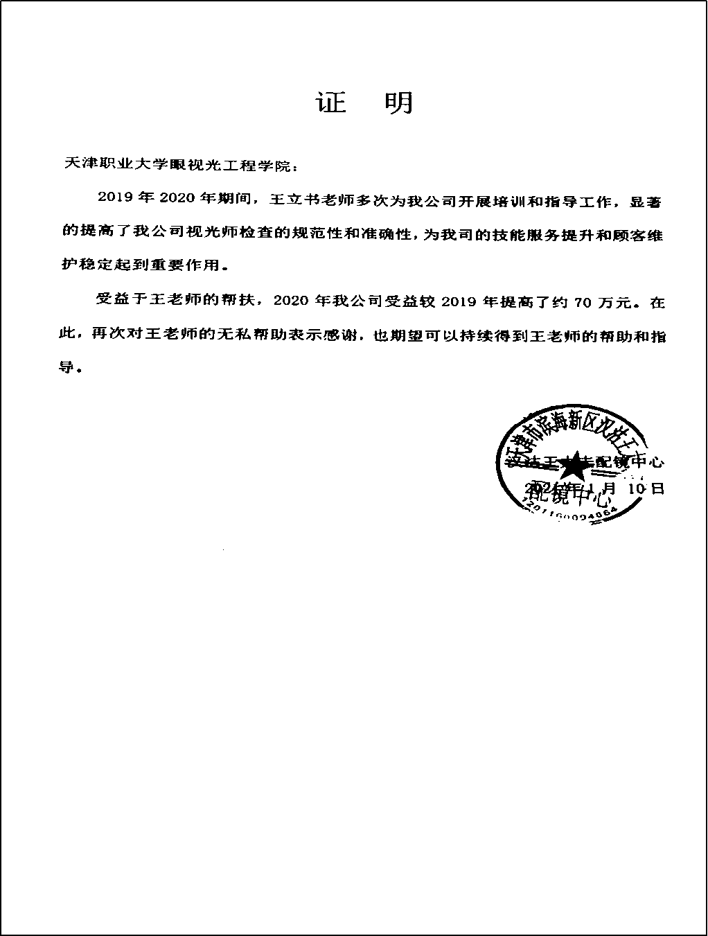 1.2王立书技能大师工作室被认定为“2020年天津市技能大师工作室”建设项目;王立书老师被天津爱尔眼科医院聘为科技特派员(2021年),并建立“王立书大师工作室”