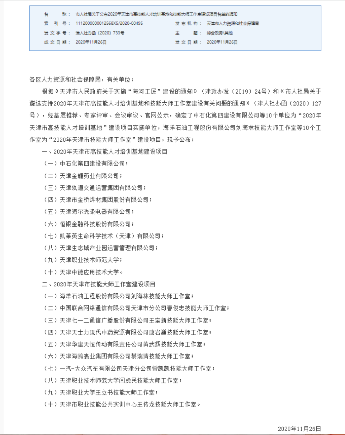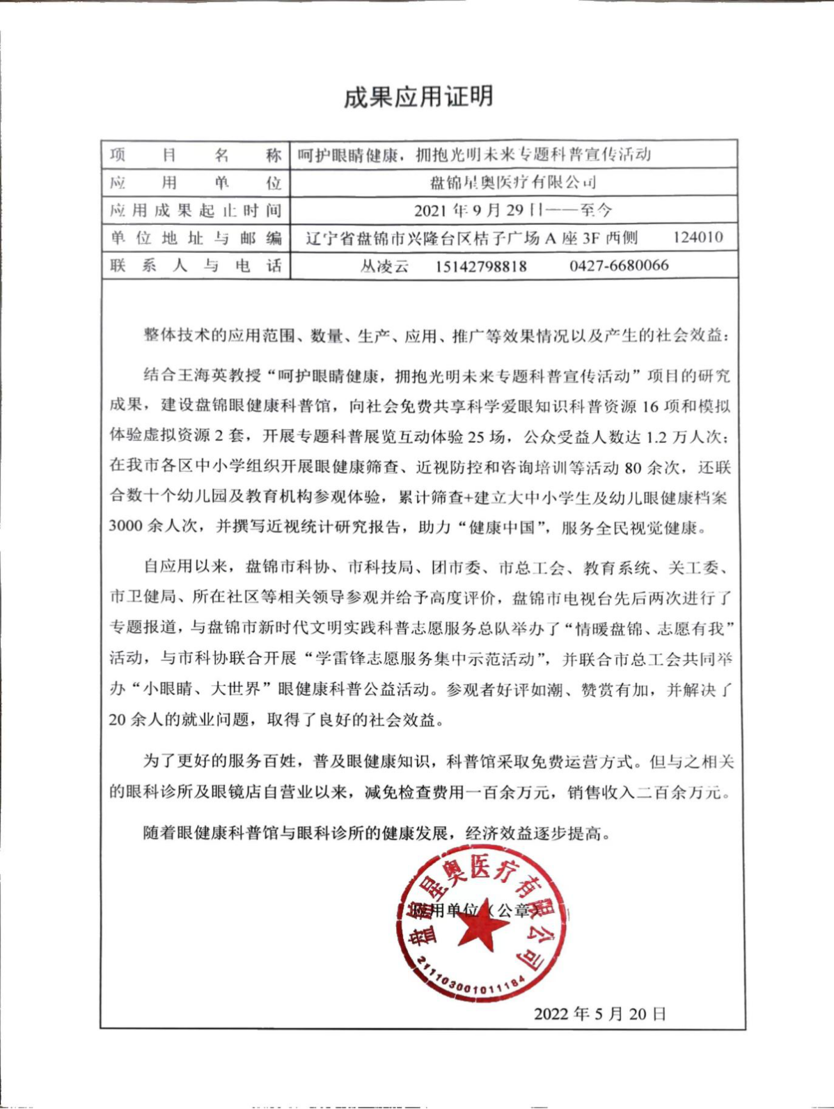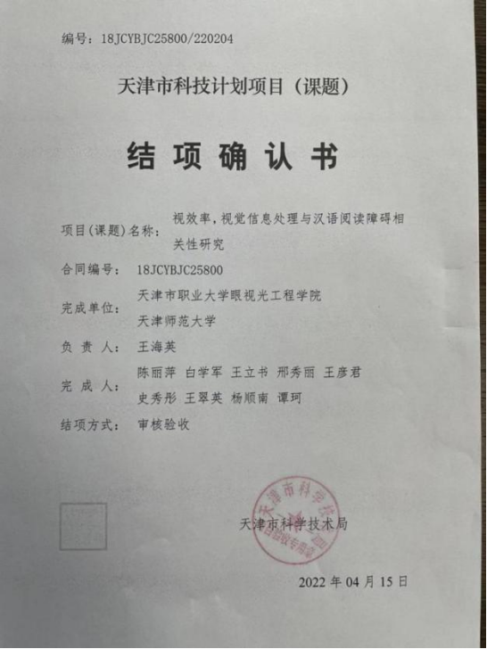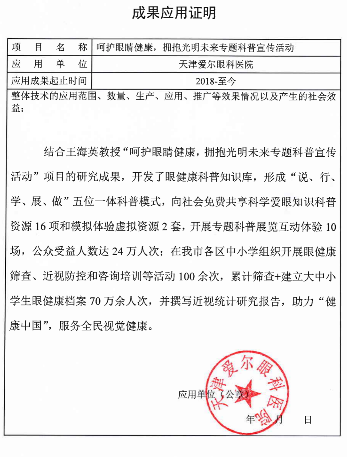 1.2王立书技能大师工作室被认定为“2020年天津市技能大师工作室”建设项目;王立书老师被天津爱尔眼科医院聘为科技特派员(2021年),并建立“王立书大师工作室”