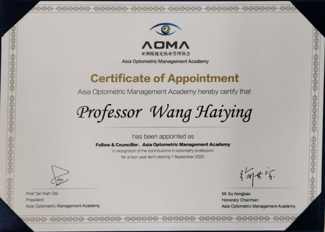 3-8王海英老师受聘任亚洲眼视光执业管理协会理事