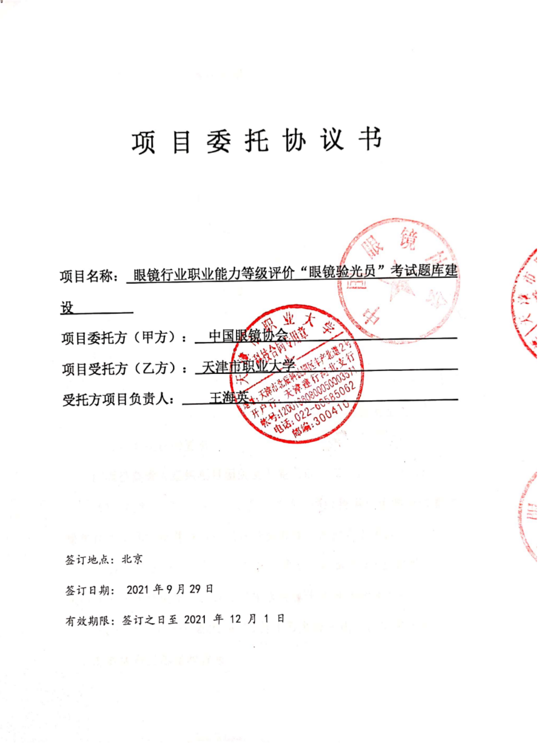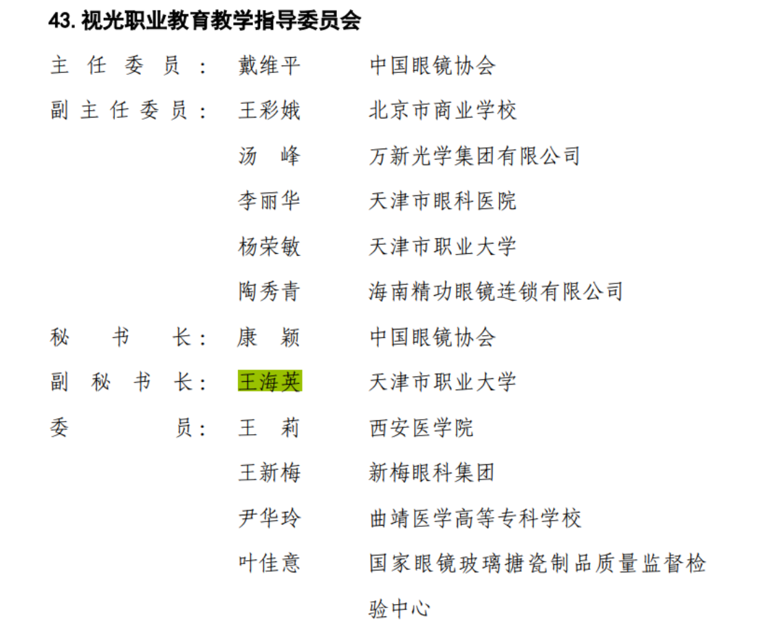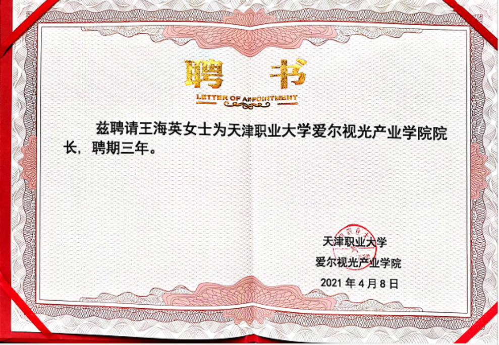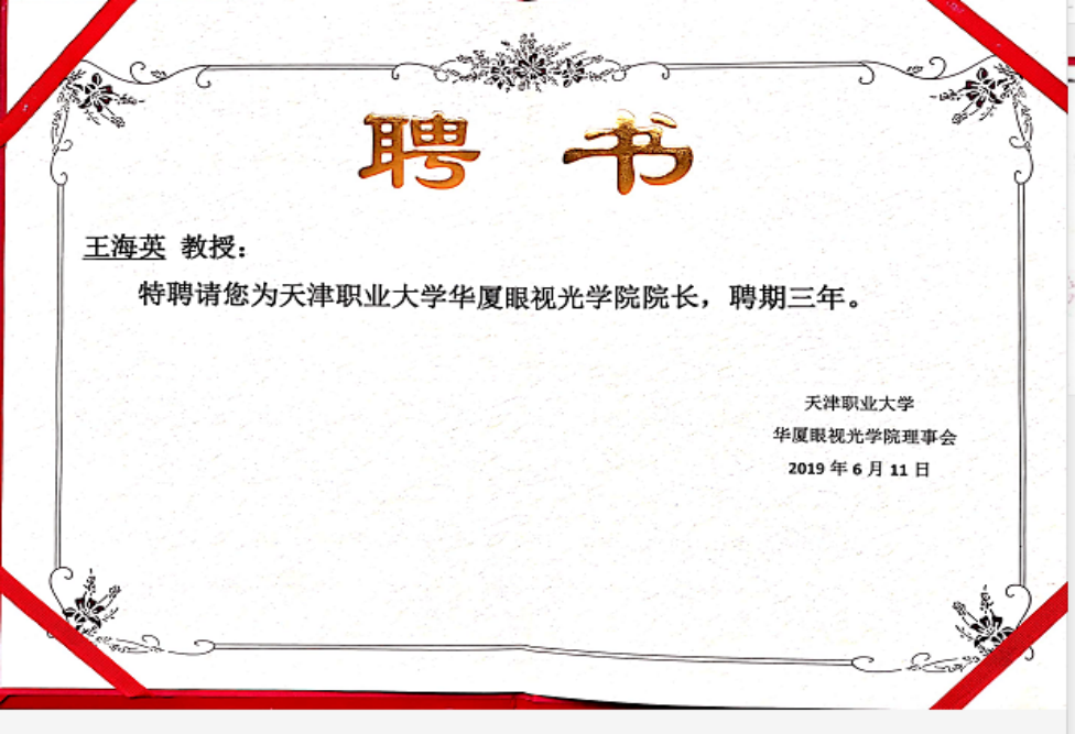 3-6天津职业大学被认定为国眼镜协会常务理事单位,王海英老师受聘常务理事