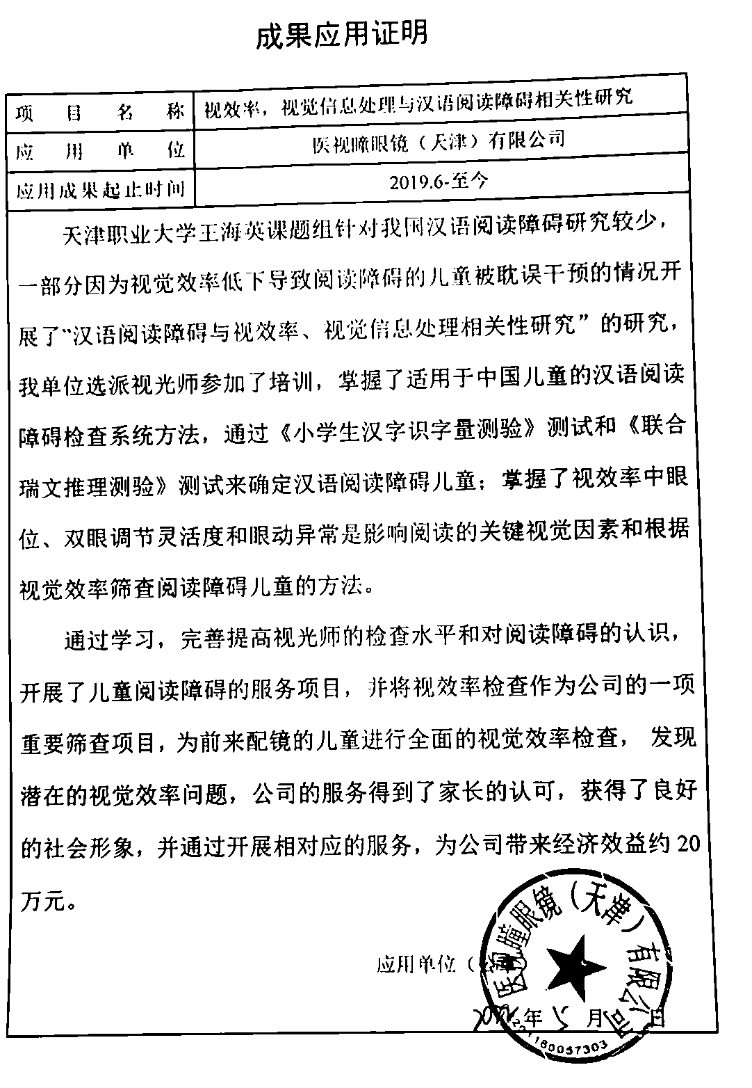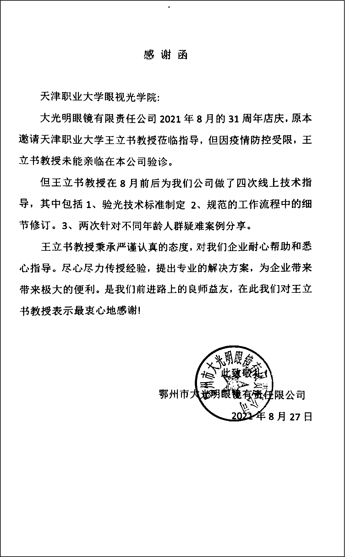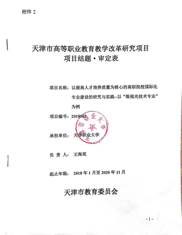 3-6天津职业大学被认定为国眼镜协会常务理事单位,王海英老师受聘常务理事