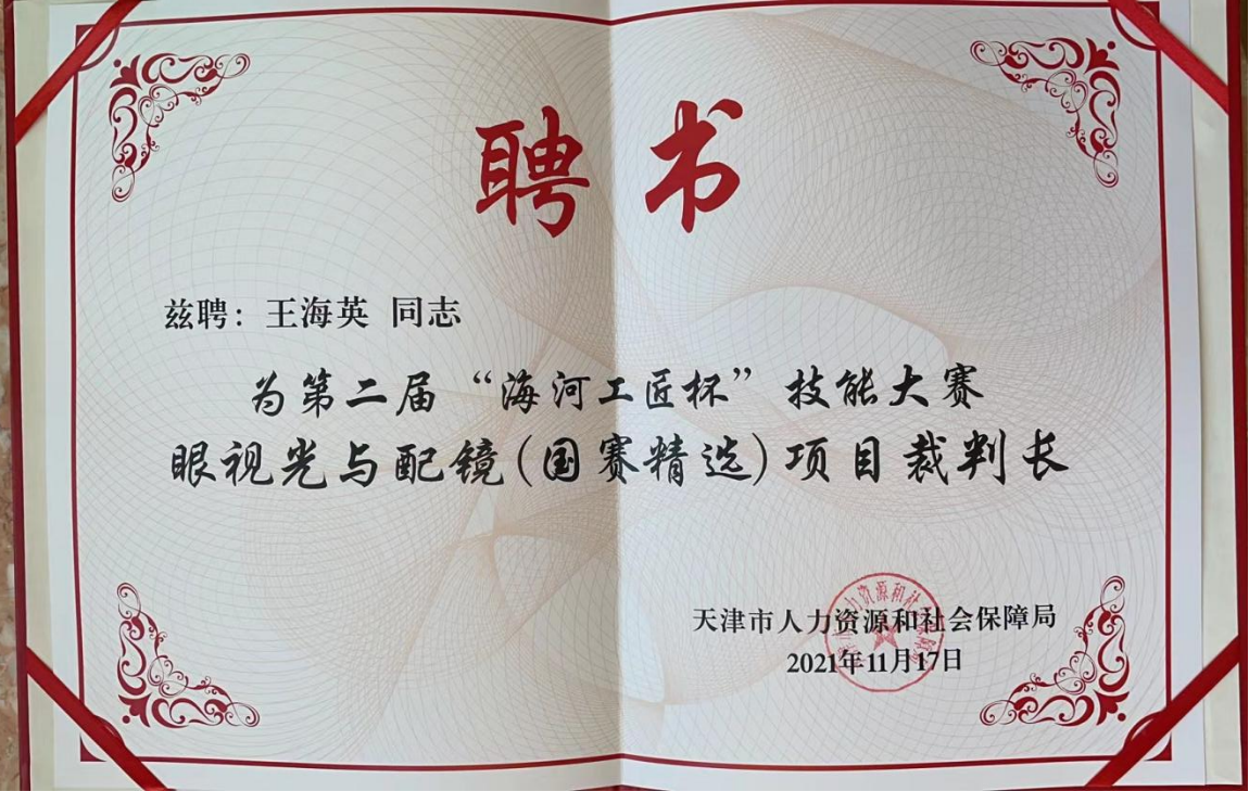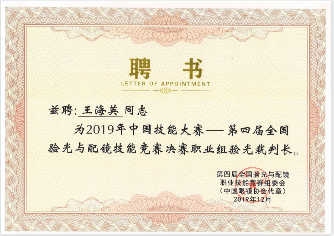 3-11王海英老师受聘任第四届全国验光与配镜技能竞赛职业组验光裁判长