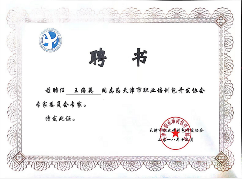 3-7王海英老师受聘任天津市职业培训包专家委员会专家