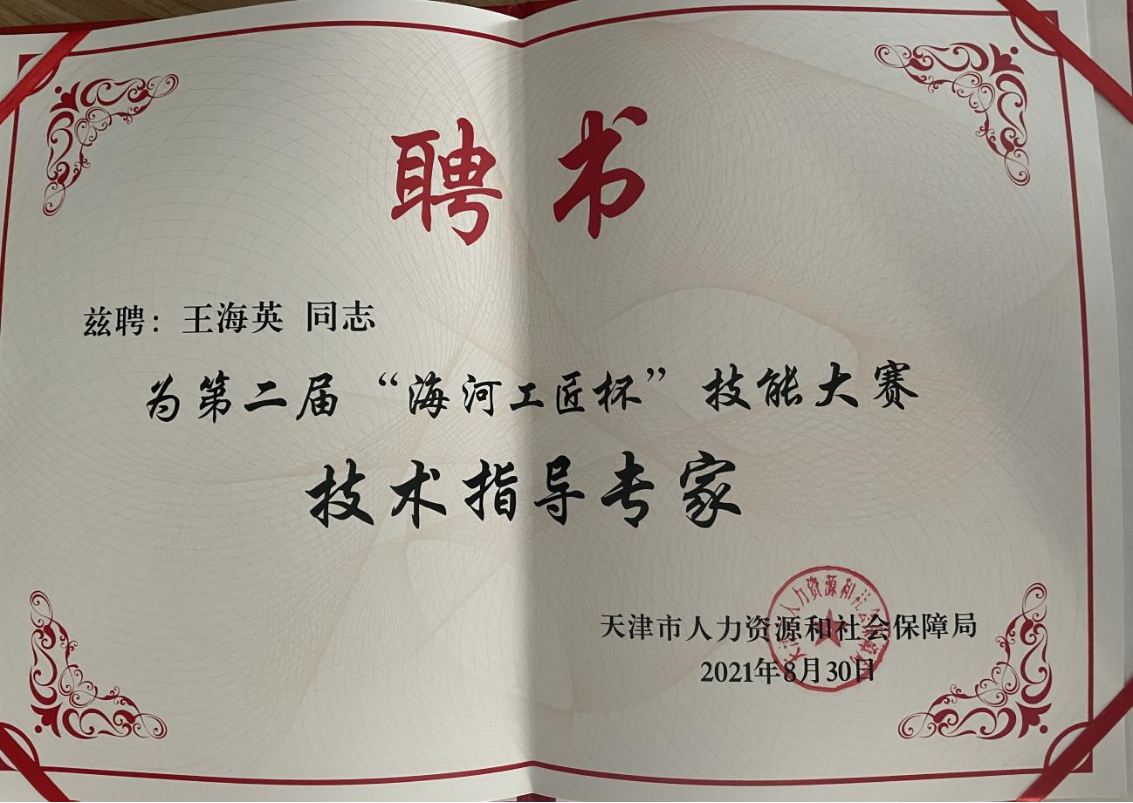 3-9王海英老师受聘任第二届“海河工匠”杯技能大赛技术指导专家和裁判长