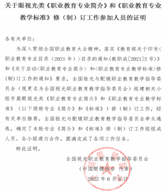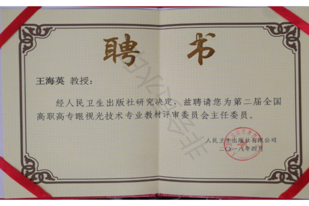 3-5王海英老师受聘高专眼视光技术专业教材评审委员