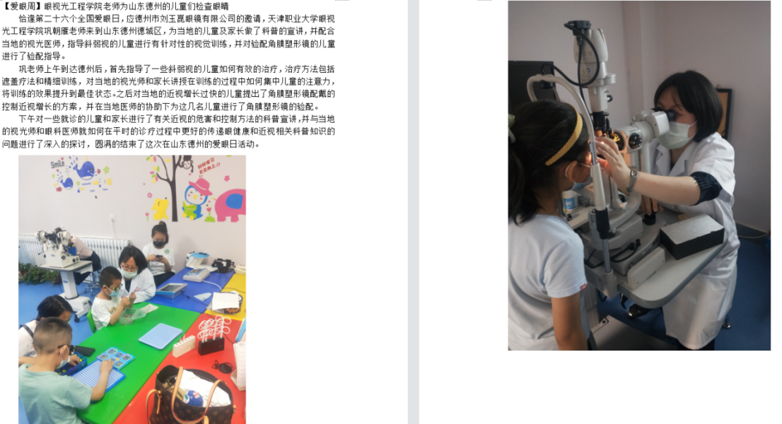 (1)依托大师工作室,深入实施帮扶,解决眼镜店转型升级中的技术问题,为企业员工开展标准验光流程、双眼视功能检查、裂隙灯眼科检查、青少年近视防控、角膜塑形镜验配等多项技能服务。